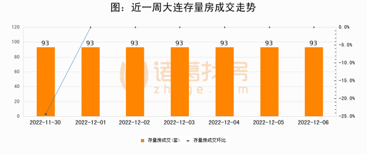 从存量房来看,2022年12月06日大连存量房单日成交93套,比昨日持平。。从近一周存量房成交来看,大连存量房日均成交套数为93套,其中11月30日成交量最高为93套,12月06日单日成交93套,与近一周平均水平持平。