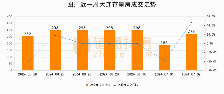 【大连成交日报】07月02日新房成交24套、二手房272套;涨价房源60套