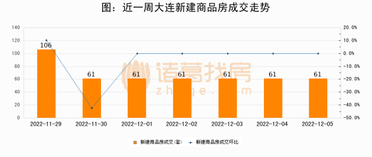 根据大连市住房保障和房屋管理局数据显示,2022年12月05日大连新建商品房成交61套,较昨日持平