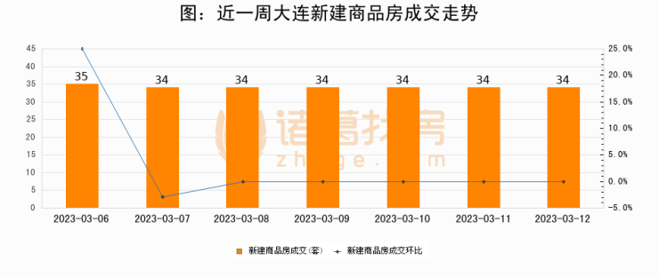 根据大连市住房保障和房屋管理局数据显示,2023年03月12日大连新建商品房成交34套,较昨日持平