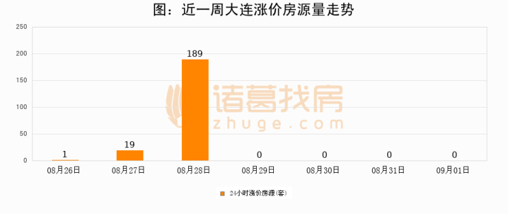 根据诸葛找房数据显示,大连24小时涨价房源量为0套,较08月31日持平。