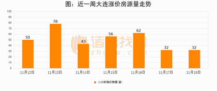 根据诸葛找房数据显示,大连24小时涨价房源量为32套,较11月17日持平。