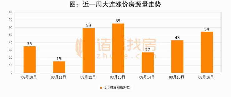 根据诸葛找房数据显示,大连24小时涨价房源量为54套,较08月15日增加11套,环比上涨25.6%。与此同时,涨价房源占比小幅扩大,业主信心有所提升。