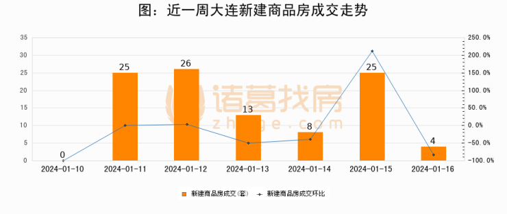 【大连成交日报】01月16日新房成交4套、二手房130套;涨价房源39套