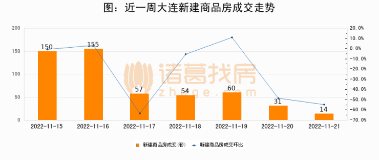 【大连成交日报】11月21日新房成交14套、二手房61套;涨价房源229套