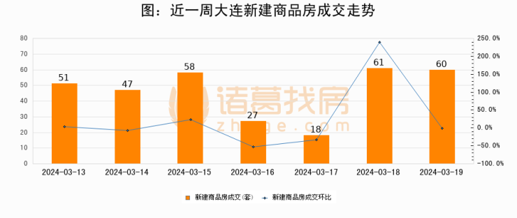 【大连成交日报】03月19日新房成交60套、二手房153套;涨价房源12套