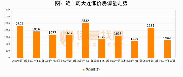 从调价房源来看,第19周大连涨价房源1264套,较上周下降42%。与此同时,19周涨价房源占比回落1.66个百分点,业主信心小幅波动,购房者可则需入市。
