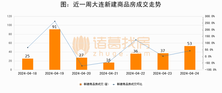 【大连成交日报】04月24日新房成交53套、二手房159套;涨价房源51套