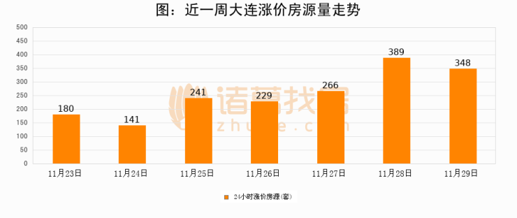 根据诸葛找房数据显示,大连24小时涨价房源量为348套,较11月28日减少41套,环比下降10.5%。与此同时,涨价房源占比小幅回落,对于购房者来说是一个入市窗口期,购房者可抓住时机入市。