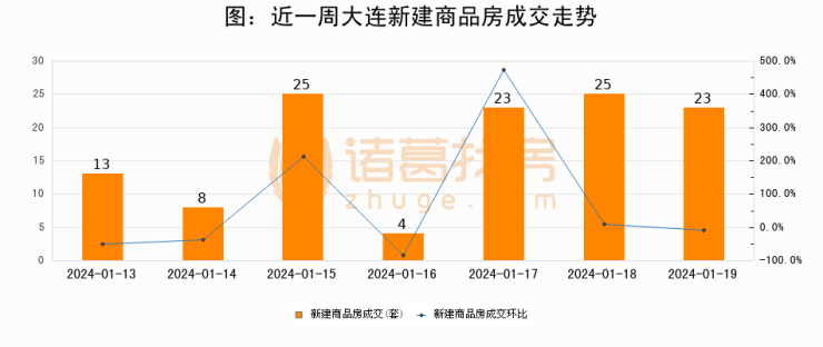 【大连成交日报】01月19日新房成交23套、二手房134套;涨价房源49套