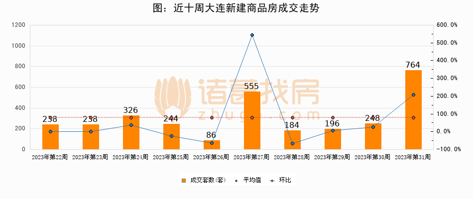 【大连成交周报】第31周新房成交764套,二手房741套,涨价房源594套