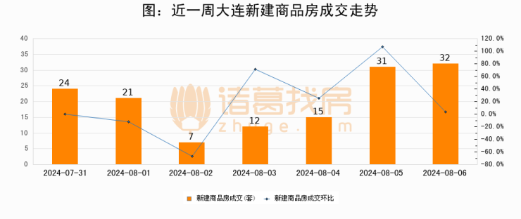 【大连成交日报】08月06日新房成交32套、二手房226套;涨价房源152套