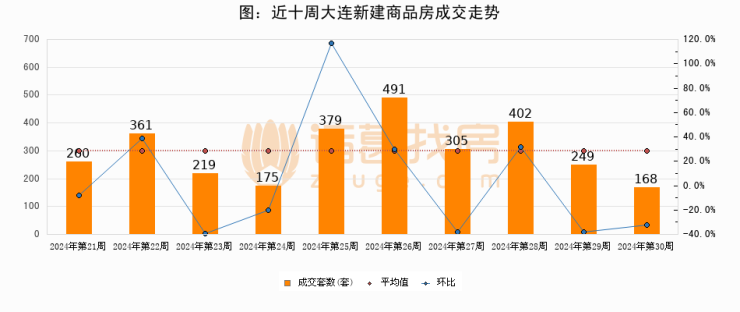 【大连成交周报】第30周新房成交168套,二手房1596套,涨价房源299套