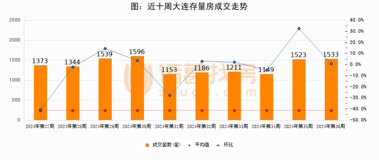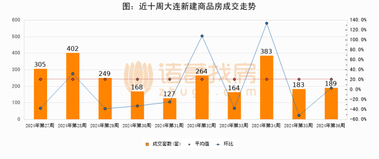 【大连成交周报】第36周新房成交189套,二手房1533套,涨价房源2套