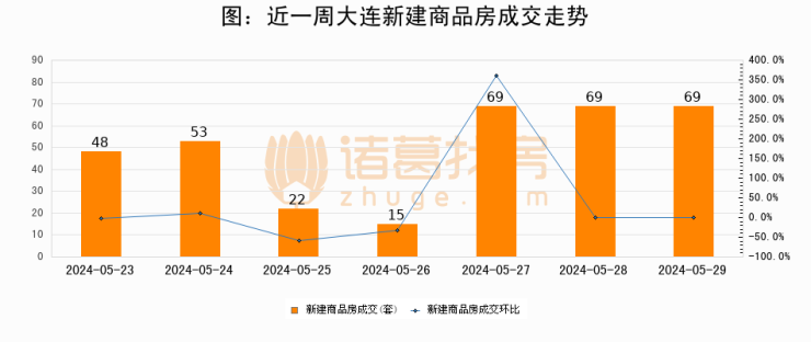 【大连成交日报】05月29日新房成交69套、二手房169套;涨价房源64套