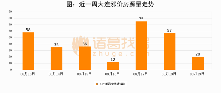 根据诸葛找房数据显示,大连24小时涨价房源量为20套,较08月18日减少37套,环比下降64.9%。与此同时,涨价房源占比小幅回落,对于购房者来说是一个入市窗口期,购房者可抓住时机入市。