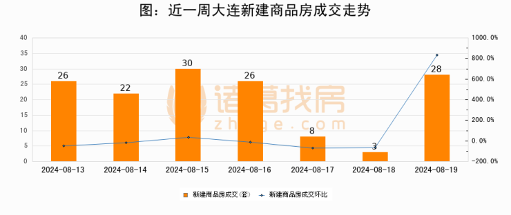 【大连成交日报】08月19日新房成交28套、二手房202套;涨价房源20套