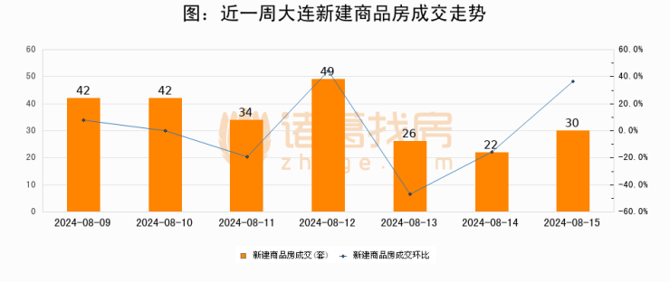 【大连成交日报】08月15日新房成交30套、二手房232套;涨价房源36套