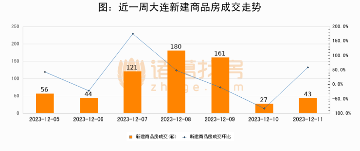 【大连成交日报】12月11日新房成交43套、二手房128套;涨价房源17套