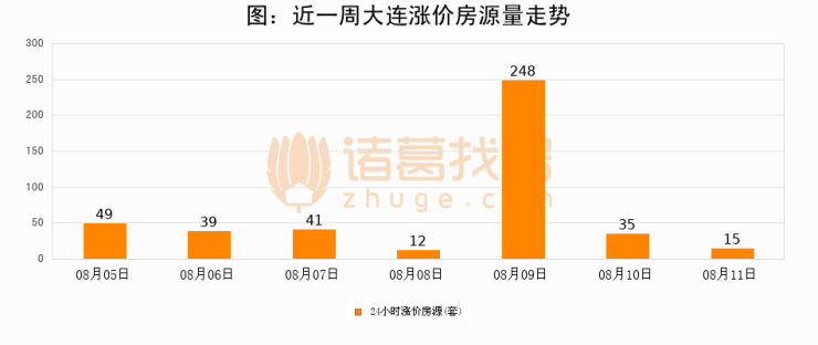 根据诸葛找房数据显示,大连24小时涨价房源量为15套,较08月10日减少20套,环比下降57.1%。与此同时,涨价房源占比小幅回落,对于购房者来说是一个入市窗口期,购房者可抓住时机入市。
