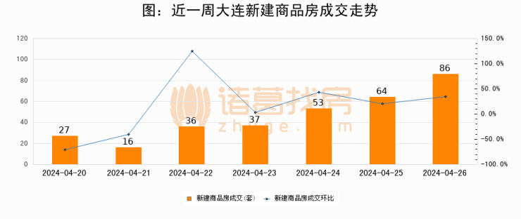 【大连成交日报】04月26日新房成交86套、二手房192套;涨价房源66套