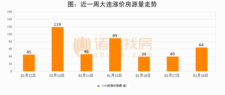 根据诸葛找房数据显示,大连24小时涨价房源量为64套,较01月17日增加24套,环比上涨60%。与此同时,涨价房源占比小幅扩大,业主信心有所提升。