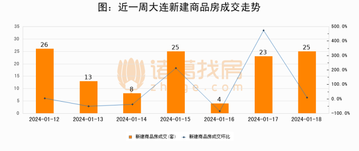【大连成交日报】01月18日新房成交25套、二手房122套;涨价房源64套