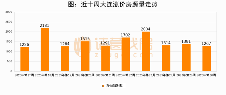 从调价房源来看,第26周大连涨价房源1267套,较上周下降8.3%。与此同时,26周涨价房源占比提升1.13个百分点,业主信心持续恢复。