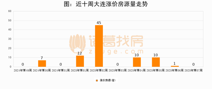 从调价房源来看,第7周大连涨价房源0套,较上周下降100%。与此同时,7周涨价房源占比回落3.23个百分点,业主信心小幅波动,购房者可则需入市。