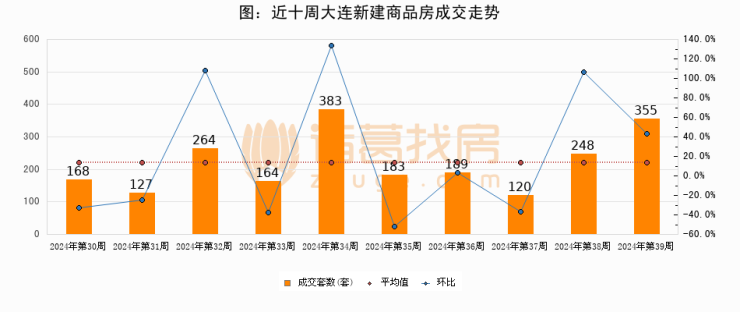 【大连成交周报】第39周新房成交355套,二手房1162套,涨价房源1296套