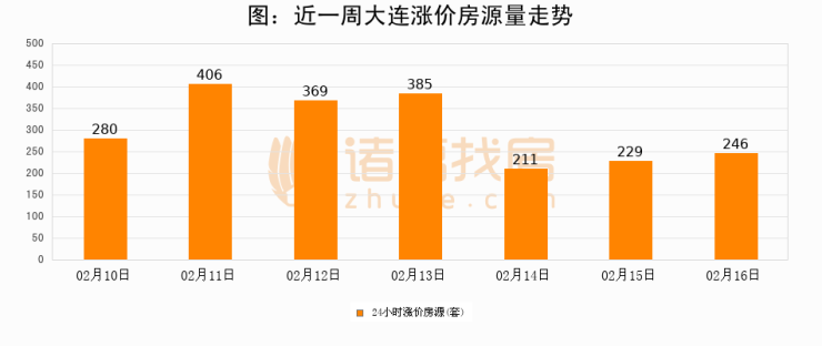 根据诸葛找房数据显示,大连24小时涨价房源量为246套,较02月15日增加17套,环比上涨7.4%。与此同时,涨价房源占比小幅扩大,业主信心有所提升。