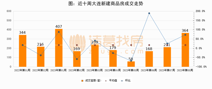 【大连成交周报】第08周新房成交364套,二手房732套,涨价房源1752套