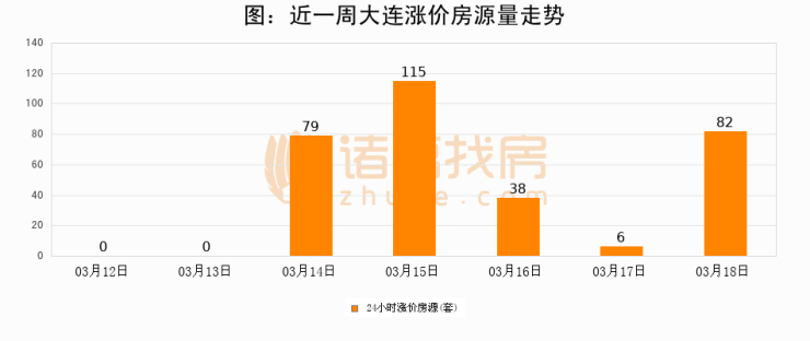 根据诸葛找房数据显示,大连24小时涨价房源量为82套,较03月17日增加76套,环比上涨1266.7%。与此同时,涨价房源占比小幅扩大,业主信心有所提升。