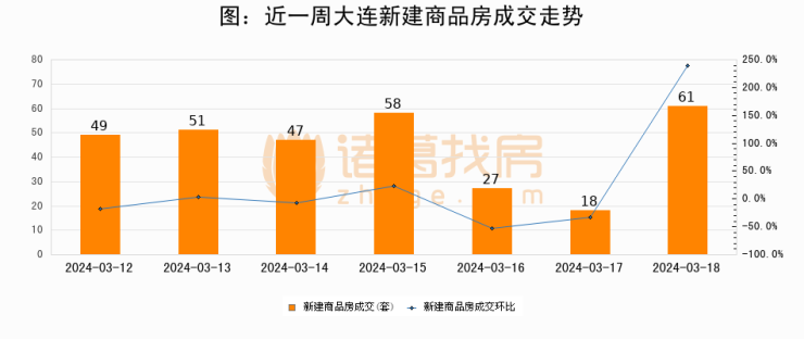 【大连成交日报】03月18日新房成交61套、二手房160套;涨价房源82套