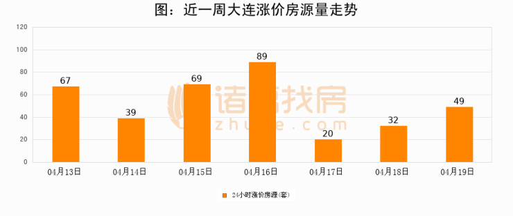 根据诸葛找房数据显示,大连24小时涨价房源量为49套,较04月18日增加17套,环比上涨53.1%。与此同时,涨价房源占比小幅扩大,业主信心有所提升。