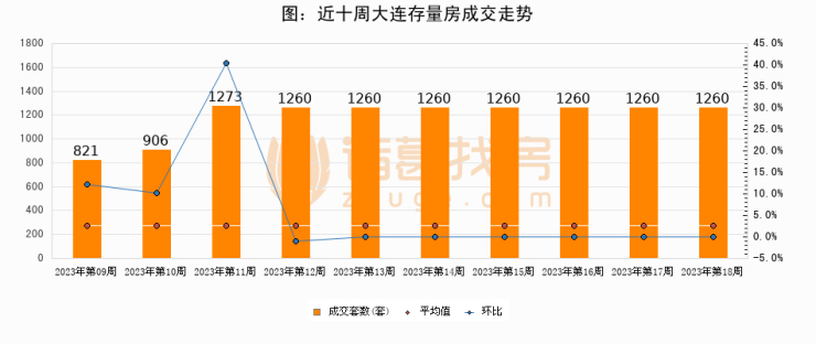 存量房方面,第18周大连存量房成交1260套,较上周持平。从近十周成交走势来看,周均成交套数为1182套,本周高于平均水平6.6%。