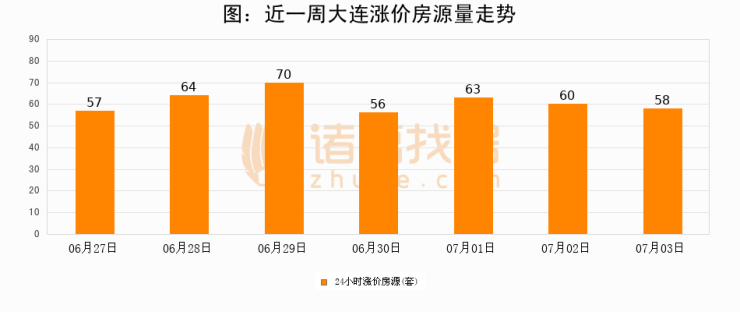 根据诸葛找房数据显示,大连24小时涨价房源量为58套,较07月02日减少2套,环比下降3.3%。与此同时,涨价房源占比小幅回落,对于购房者来说是一个入市窗口期,购房者可抓住时机入市。