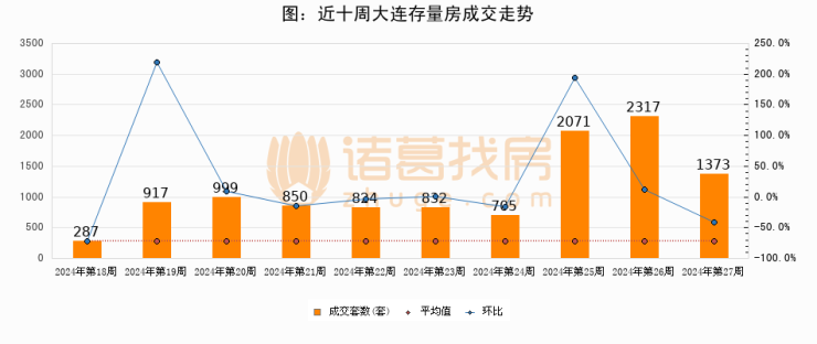 【大连成交周报】第27周新房成交305套,二手房1373套,涨价房源693套