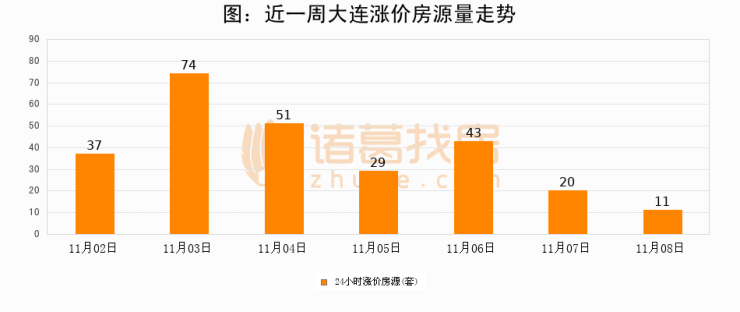 根据诸葛找房数据显示,大连24小时涨价房源量为11套,较11月07日减少9套,环比下降45%。与此同时,涨价房源占比小幅回落,对于购房者来说是一个入市窗口期,购房者可抓住时机入市。