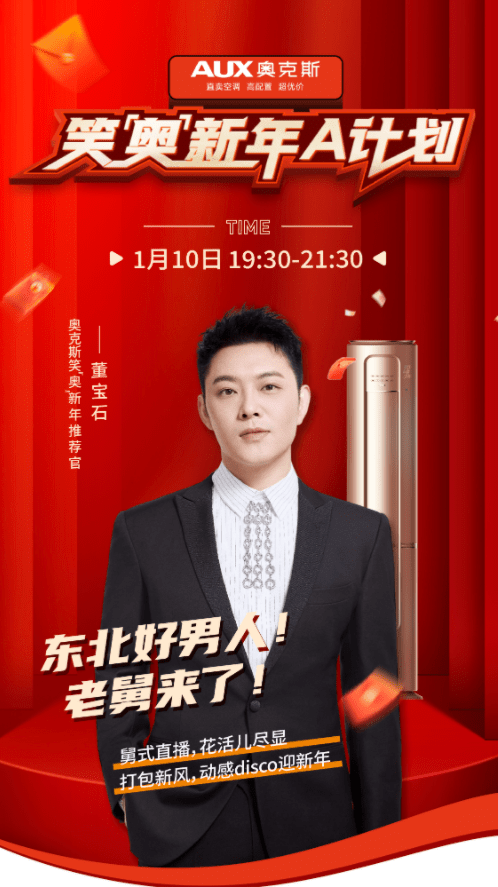 新春新景开新宴,看取新年乐事绵。随着兔年春节的脚步越来越近,1月10日,杭州2022年亚运会官方空调独家供应商——奥克斯空调以“笑奥新年”为主题,邀请艺人董宝石Gem(老舅)担当笑“奥”新年推荐官,举行了2023年首场年货节直播。直播期间,奥克斯空调倾情释出28元秒杀奥知音挂机等多重年货节惊喜礼,为消费者新年换新机提供诚意优惠,助力大家拥抱新年新气象。