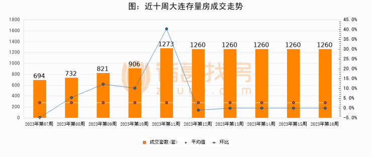 存量房方面,第16周大连存量房成交1260套,较上周持平。从近十周成交走势来看,周均成交套数为1072套,本周高于平均水平17.5%。