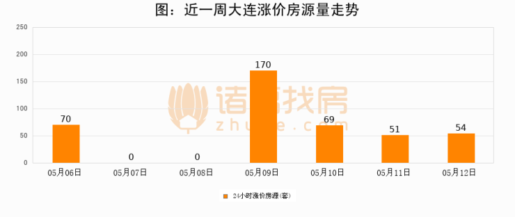 根据诸葛找房数据显示,大连24小时涨价房源量为54套,较05月11日增加3套,环比上涨5.9%。与此同时,涨价房源占比小幅扩大,业主信心有所提升。