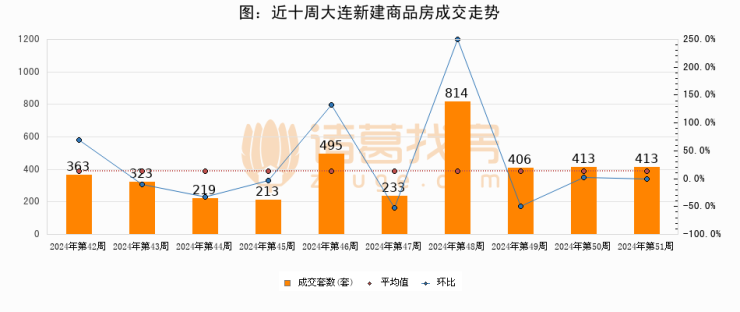 【大连成交周报】第51周新房成交413套,二手房1302套,