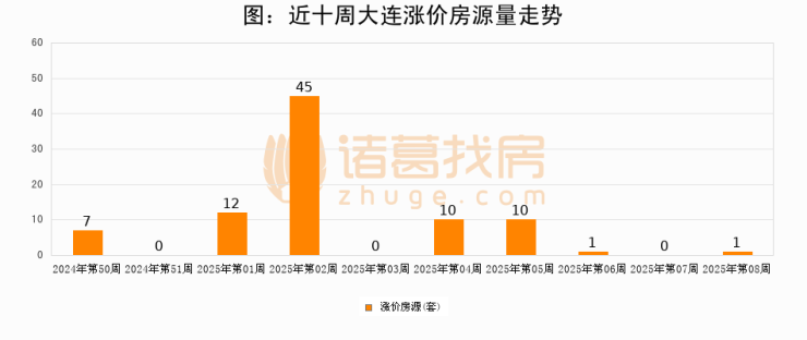 从调价房源来看,第8周大连涨价房源1套,较上周上涨0%。与此同时,8周涨价房源占比提升2.78个百分点,业主信心持续恢复。