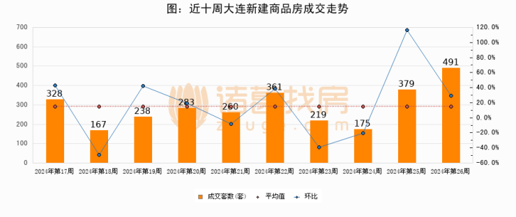【大连成交周报】第26周新房成交491套,二手房2317套,涨价房源389套