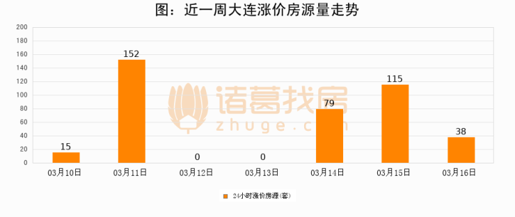 根据诸葛找房数据显示,大连24小时涨价房源量为38套,较03月15日减少77套,环比下降67%。与此同时,涨价房源占比小幅回落,对于购房者来说是一个入市窗口期,购房者可抓住时机入市。