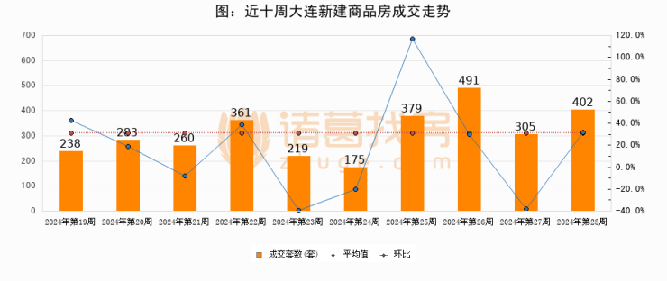 【大连成交周报】第28周新房成交402套,二手房1344套,涨价房源348套