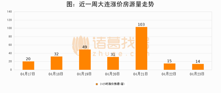 根据诸葛找房数据显示,大连24小时涨价房源量为14套,较04月22日减少1套,环比下降6.7%。与此同时,涨价房源占比小幅回落,对于购房者来说是一个入市窗口期,购房者可抓住时机入市。