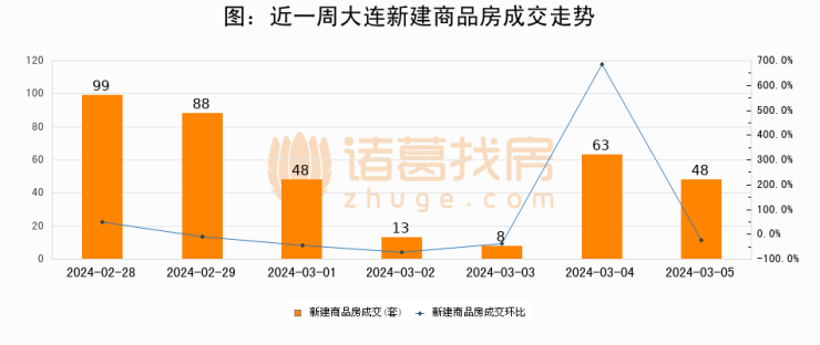 【大连成交日报】03月05日新房成交48套、二手房128套;涨价房源16套