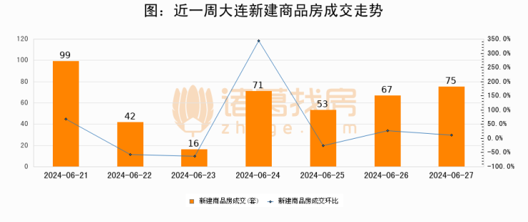【大连成交日报】06月27日新房成交75套、二手房298套;涨价房源57套